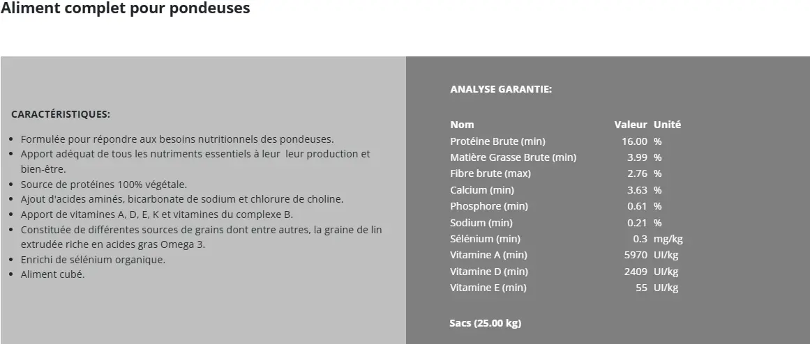 - Excellente production d’oeufs de qualité supérieure.