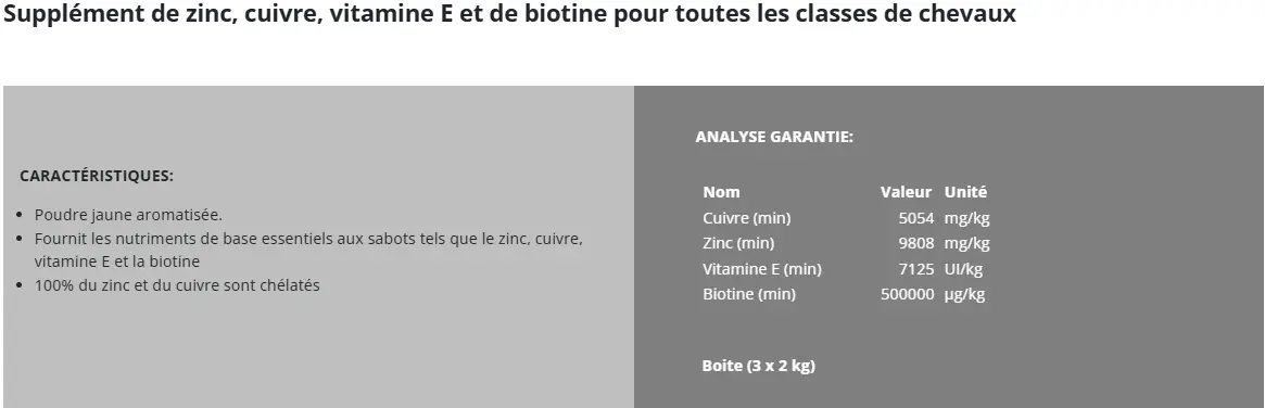 - Maintient l'intégrité et améliore la qualité de la corne des sabots.