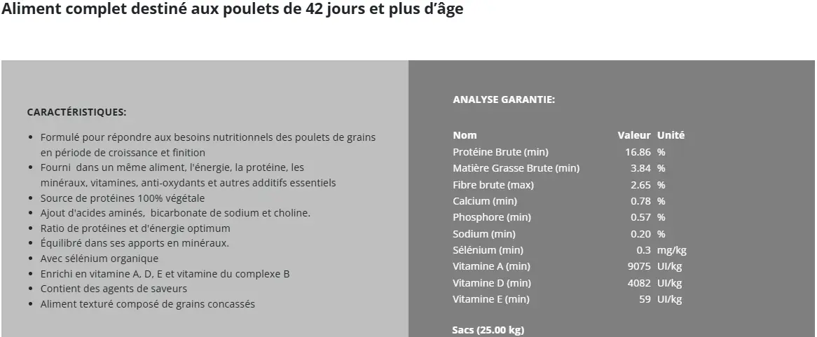 - Permet un développement plus rapide du poulet.