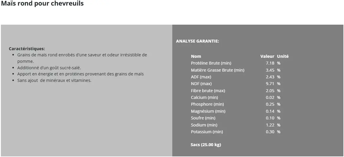 Servir en libre choix sur votre territoire de chasse pour l’appâtage des chevreuils.