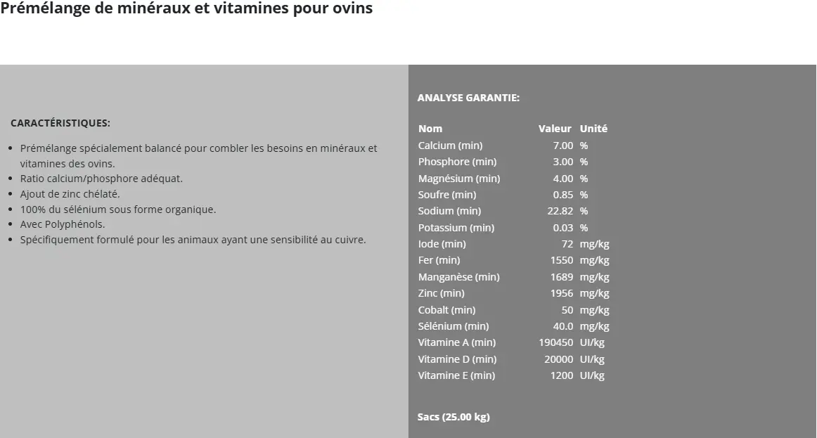 Consulter le Cahier Ovin Nature pour plus d'informations sur les estimations de consommation de ce minéral selon le stade physiologique de l'animal.