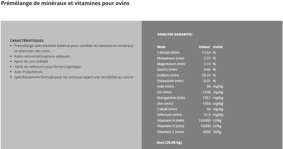 Ce prémélange est recommandé particulièrement pour les brebis très prolifiques.