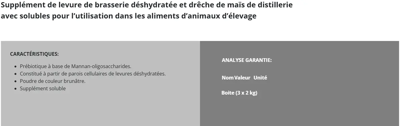 - Améliore la conversion alimentaire et le taux de gain.